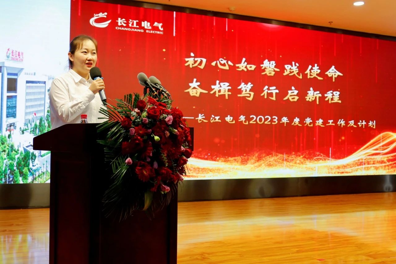 大會在莊嚴肅穆的國歌聲中,拉開帷幕。長江電氣黨委委員張作頓主持大會,首先匯報了長江電氣2023年新發(fā)展黨員情況。