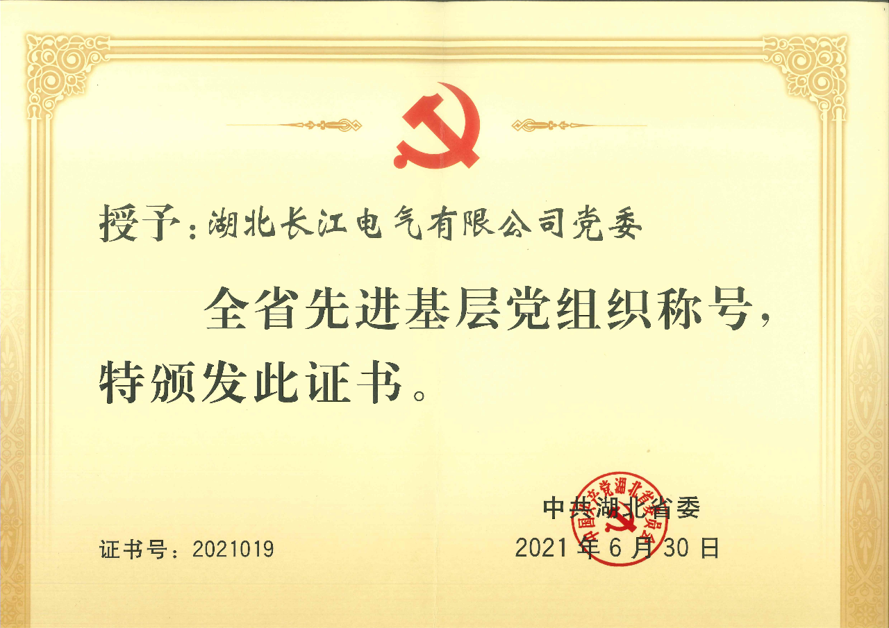 湖北長江電氣有限公司黨委榮獲“湖北省先進(jìn)基層黨組織”稱號(hào)。