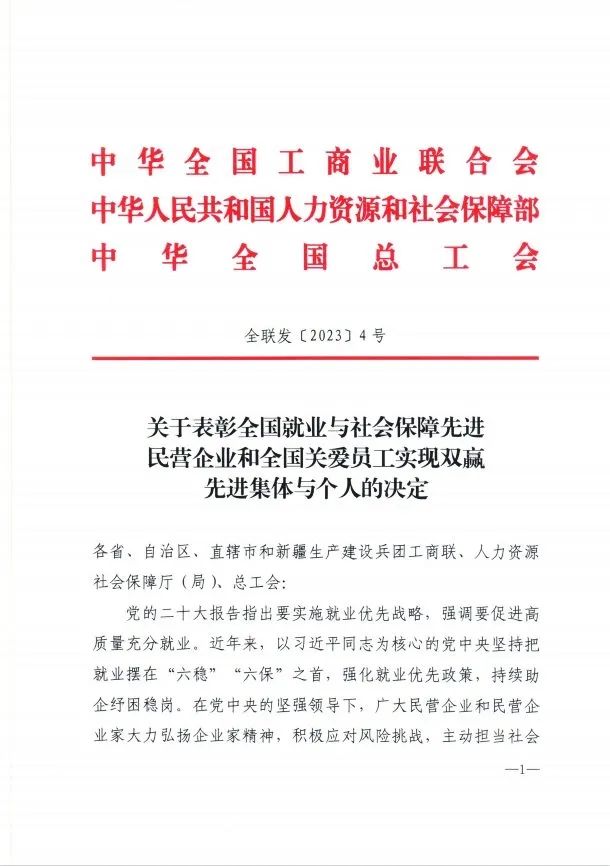 ▲《關(guān)于表彰全國就業(yè)與社會保障先進(jìn)民營企業(yè)和全國關(guān)愛員工實現(xiàn)雙贏先進(jìn)集體與個人的決定》及附件(部分)