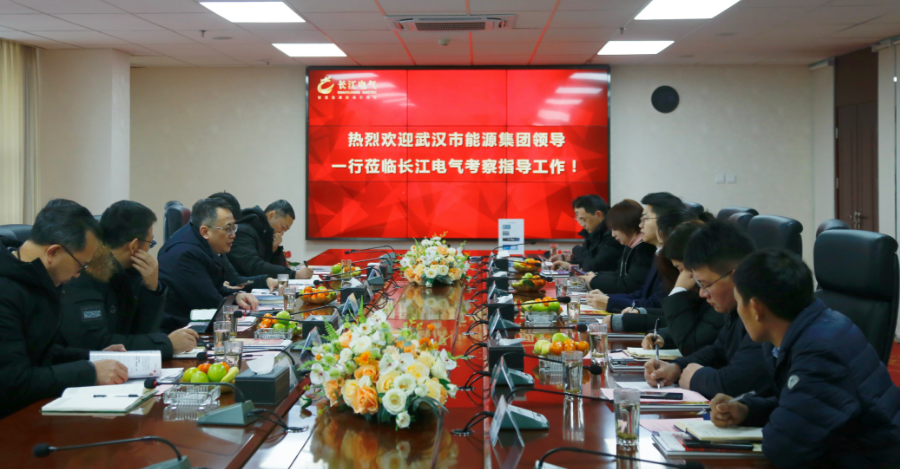 1月26日,武漢市能源集團有限公司黨委委員、副總經(jīng)理尹衛(wèi)東一行走訪調(diào)研長江電氣,長江電氣總裁王朝陪同調(diào)研。