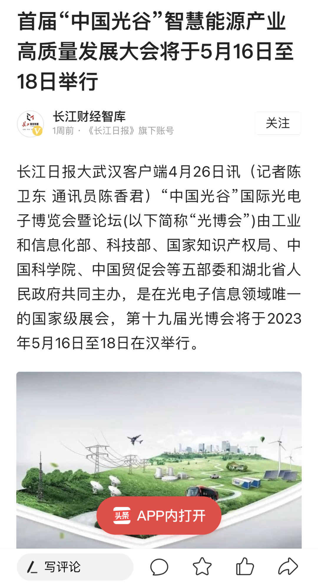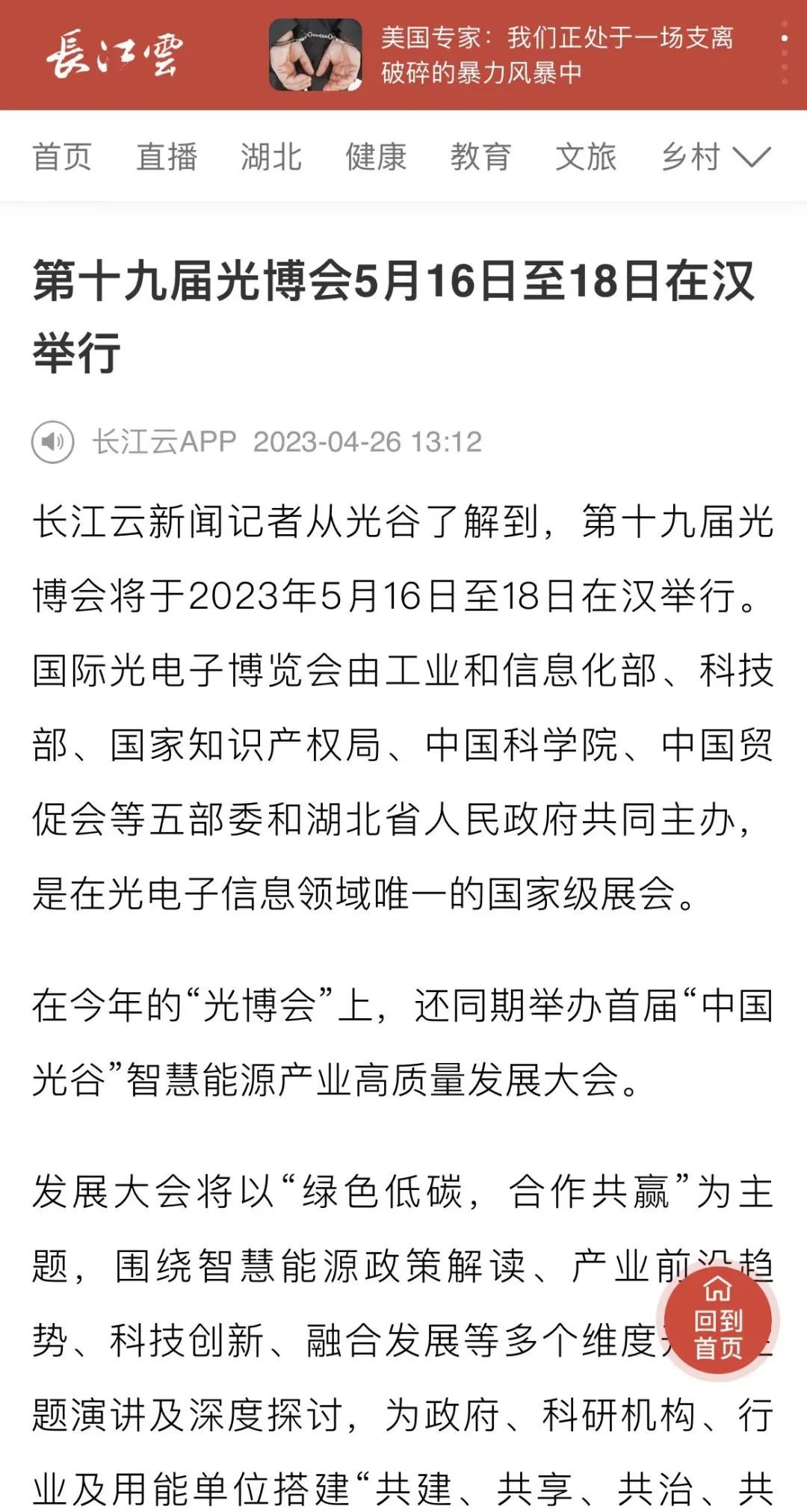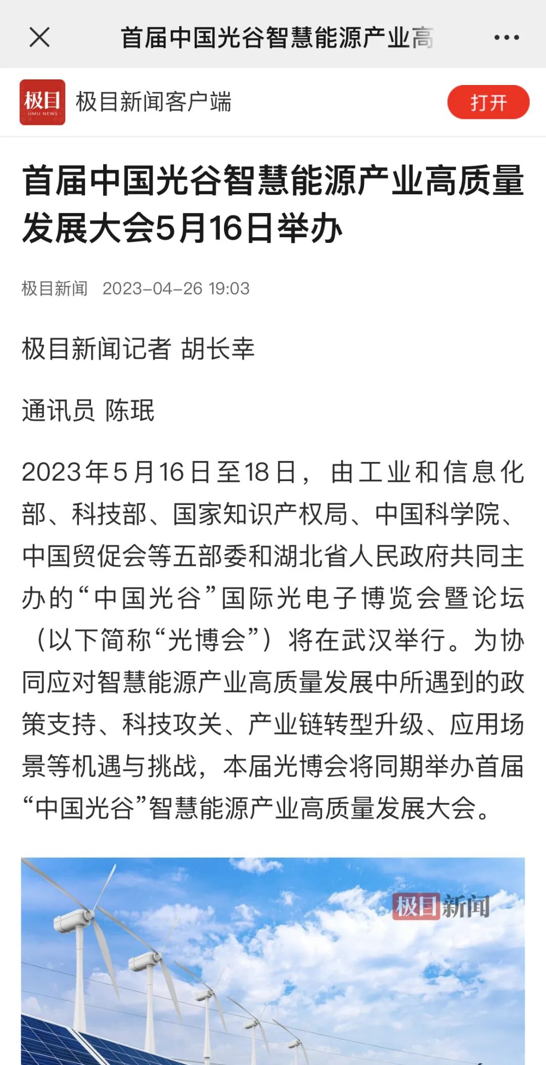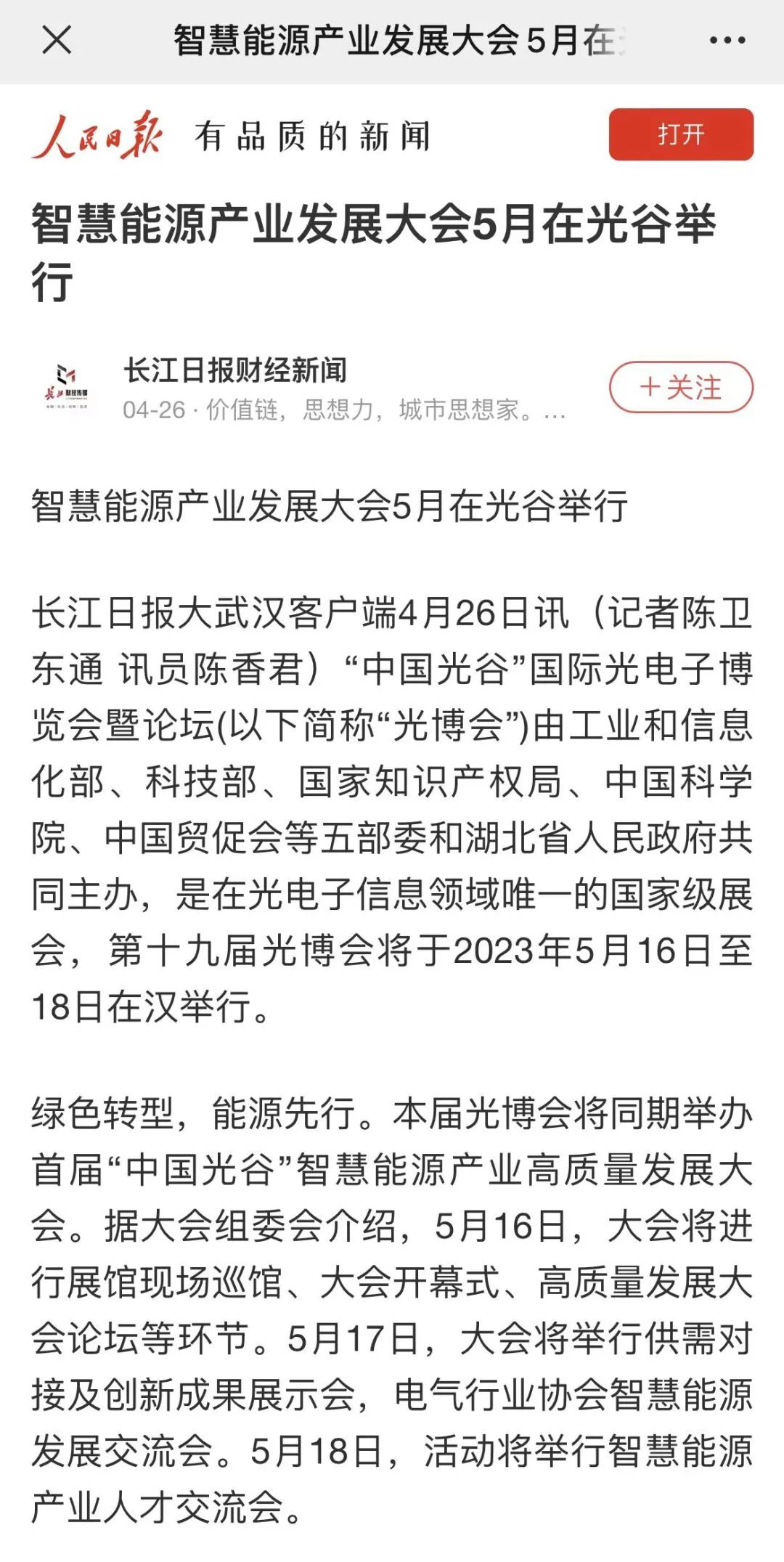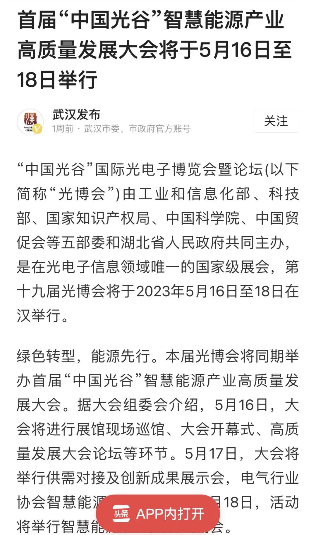 2023年5月16日至18日,首屆“中國(guó)光谷”智慧能源產(chǎn)業(yè)高質(zhì)量發(fā)展大會(huì)將在中國(guó)光谷舉行。